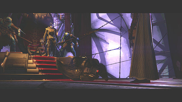 El espectro nos comunica que en algún lugar de la nave habrá una sala del trono donde este Draksis, avanzando por los pasillos (cuidado con los Vándalos camuflados y sus ataques cuerpo a cuerpo) llenos de Caídos llegamos a una sala más amplia donde nos atacan aparte de lo de siempre, un Sirviente y guardia de Draksis ultra, tras esta sala y unas escaleras llegamos finalmente a la sala donde se encuentra Draksis.