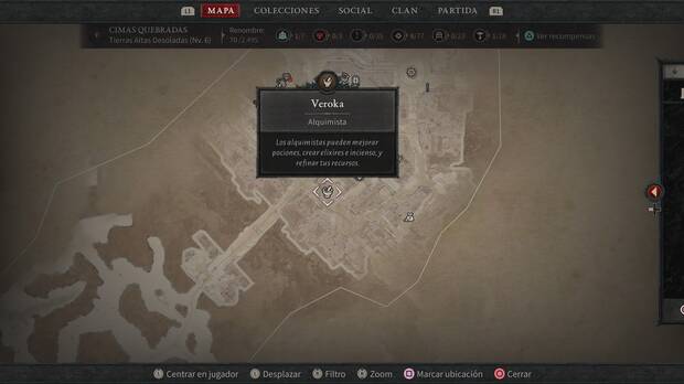 - Reconocerás las tiendas de alquimistas en el mapa por su ícono de una taza con un palo.