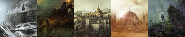- Hawezar: pantanos venenosos infestados de plantas y animales mortales al sureste. Un aquelarre de brujas residen en la región.