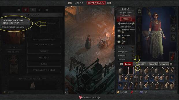 - Recicla el objeto en el herrero y te saldrá un mensaje de que acabas de desbloquear su transfiguración.