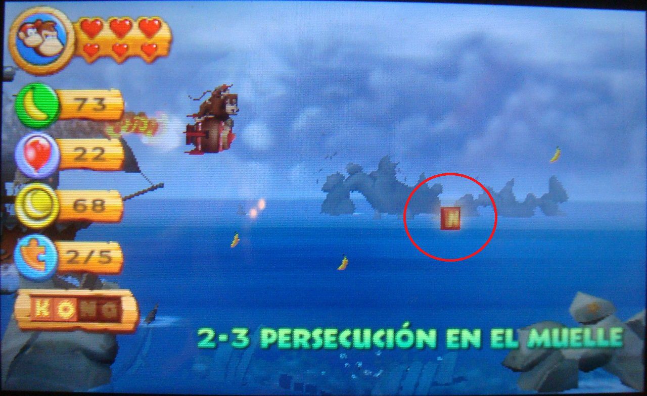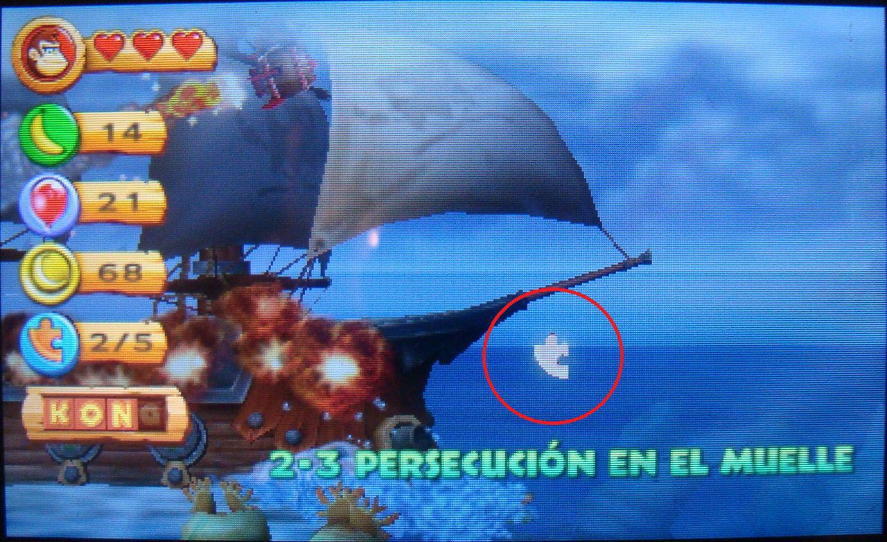 Llegarás a tierra firme. En lugar de golpear el barril de meta, ve hacia la derecha y golpea el suelo. Accederás a una fase bonus, cuya recompensa es la quinta pieza de puzle.