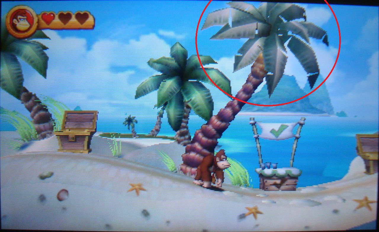 Cuando llegues a tierra firme, pasa por el punto de control y golpea el suelo varias veces para hacer caer la segunda pieza de puzle, que está en la palmera que queda justo encima.
