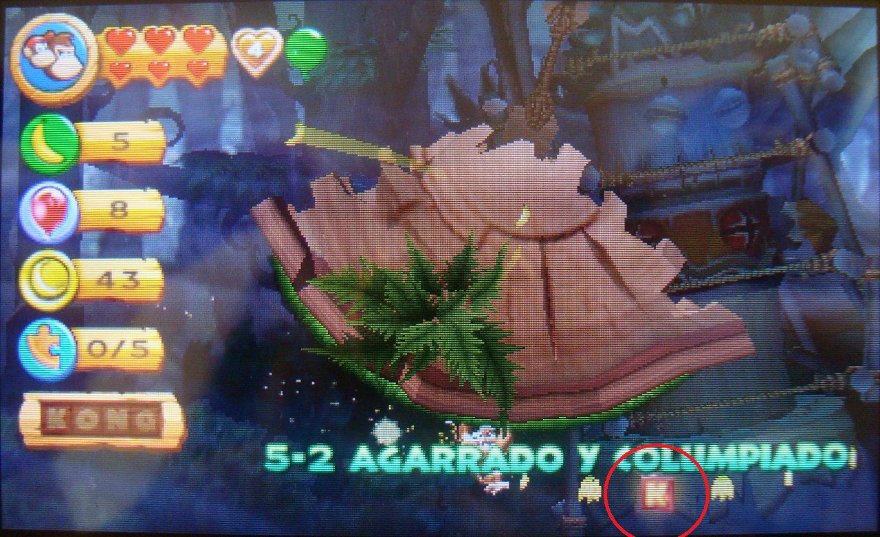 En este nivel todas las plataformas se mueven, tanto los bloques de madera con hierba, como las plataformas sujetas por cuerdas. Lo primero que recogerás por el camino es la letra K.