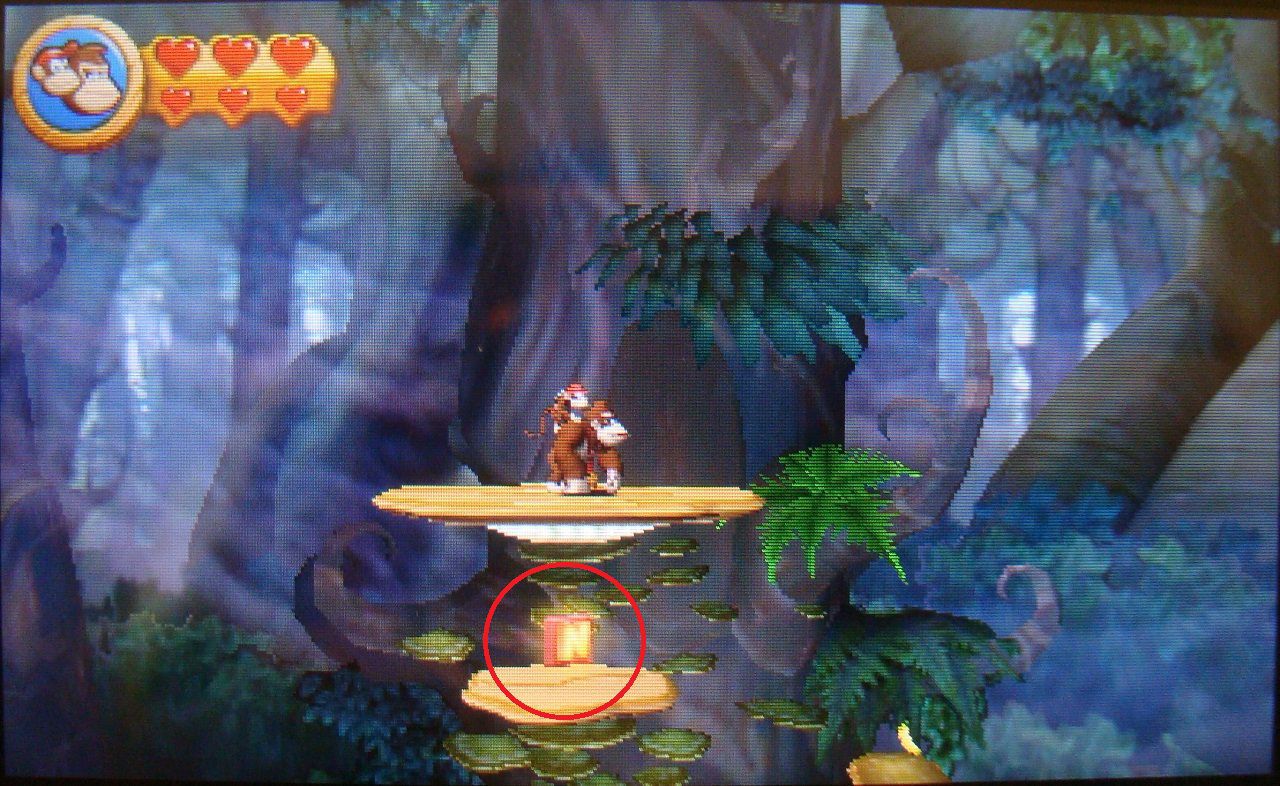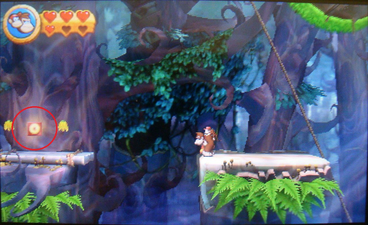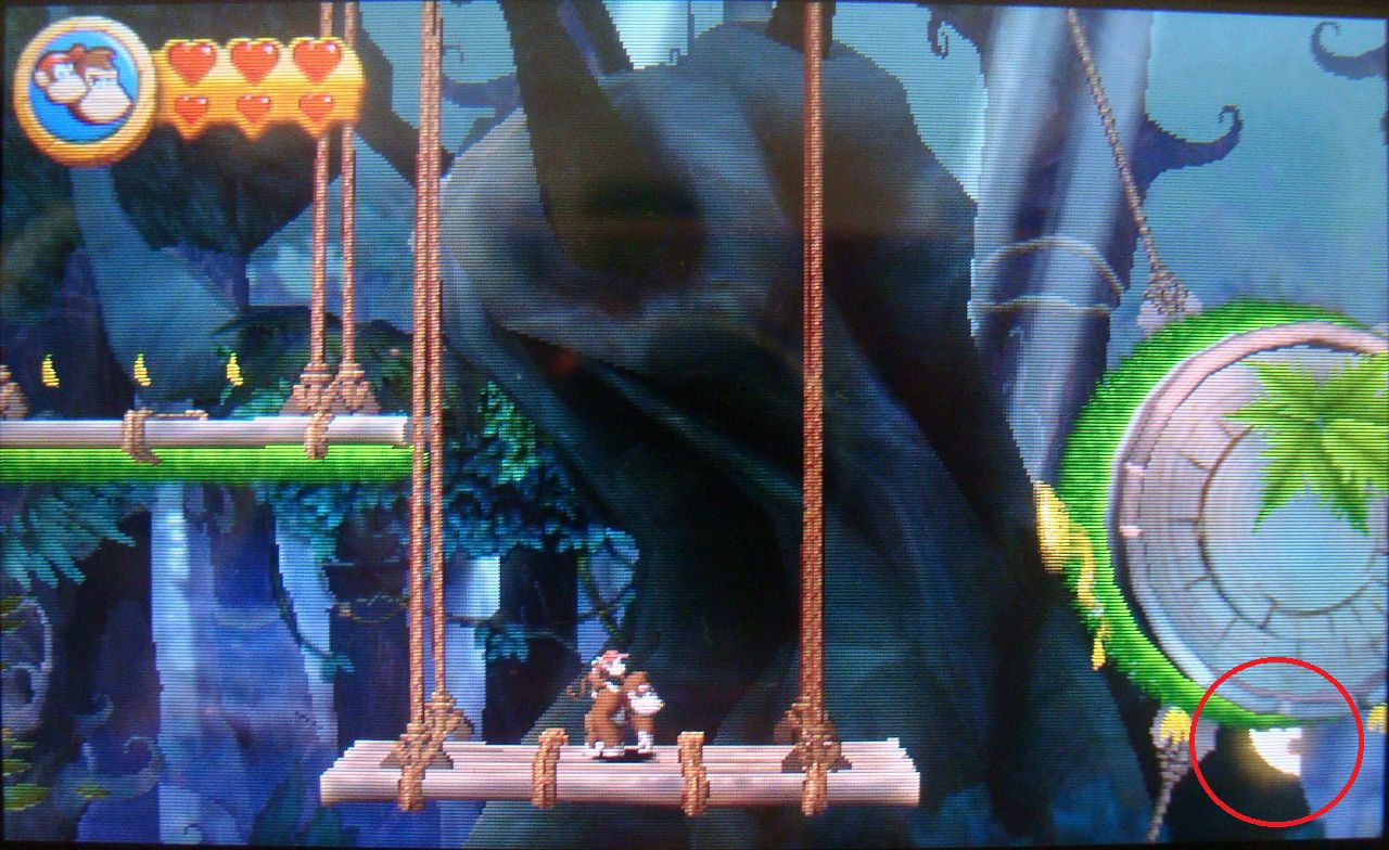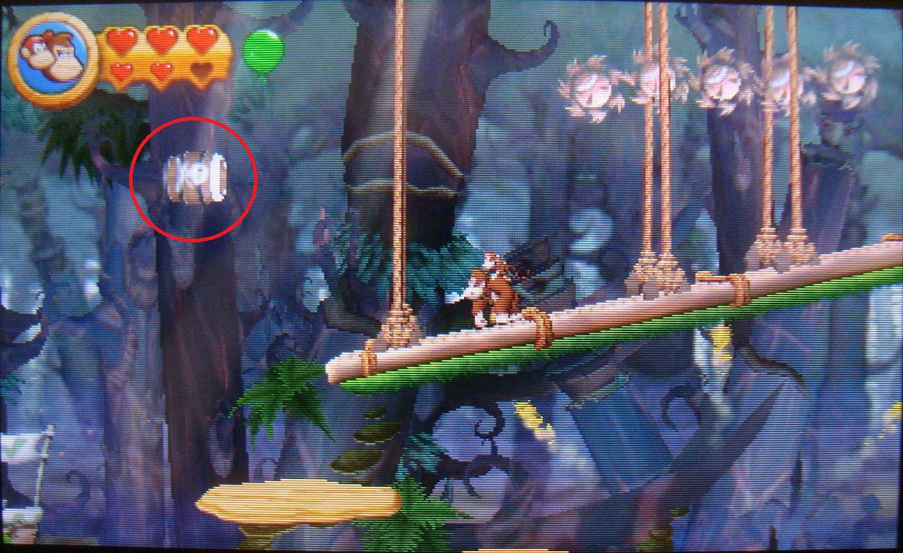 Llegarás al primer cerdo del punto de control. Engánchate a la hierba de la siguiente plataforma y cruza hasta el otro lado. Ahí, rebota en un murciélado para subirte a la plataforma que acabas de dejar atrás. Al lado izquierdo superior tiene un barril que te llevará a una fase bonus. Complétala y tendrás la segunda pieza de puzle.