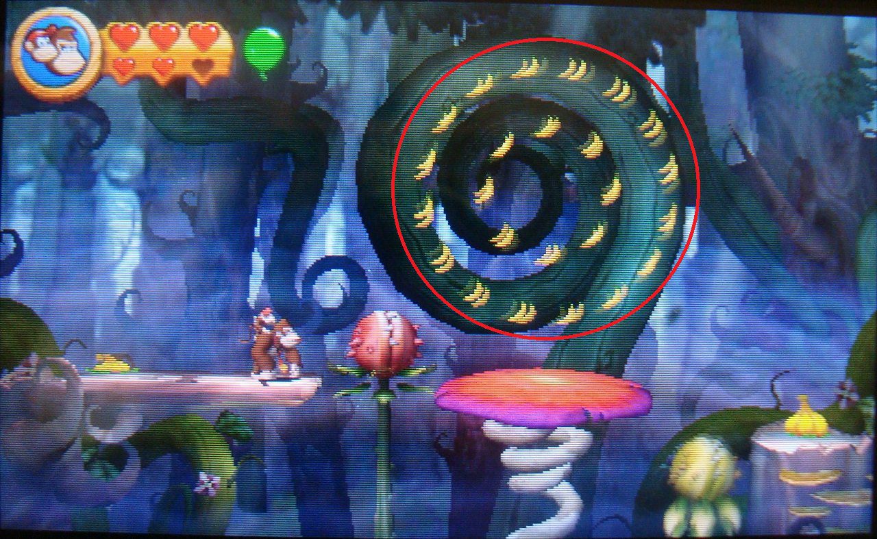 Siguiendo el camino encontrarás una gran cantidad de plátanos sobre una seta roja. Recógelos todos para que aparezca la quinta pieza de puzle.