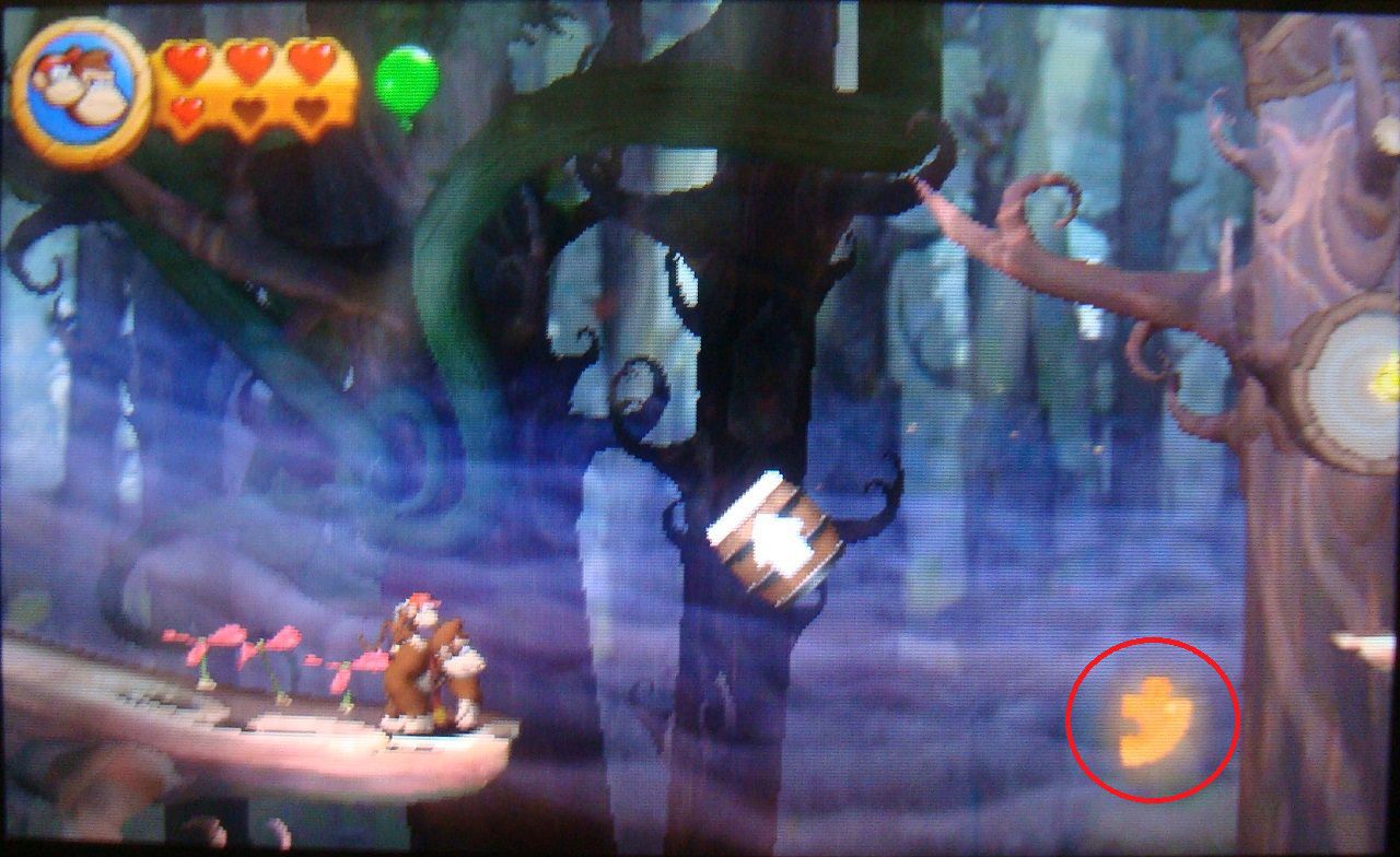 Luego déjate caer y golpea el suelo de madera en el punto más a la derecha. Accederás a una fase bonus cuyo premio es la tercera pieza de puzle.