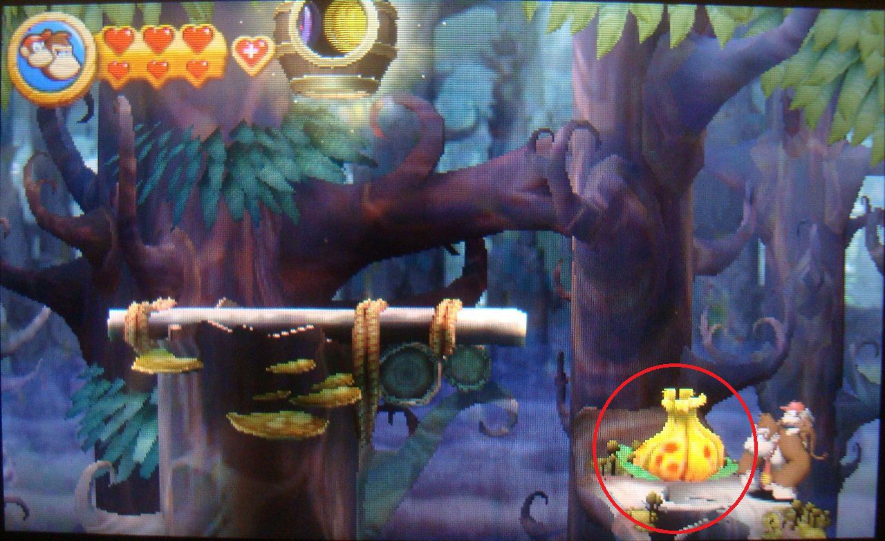 Cuando llegues a la plataforma del barril de meta no termines el nivel aún. Ve hacia la derecha y golpea la planta amarilla para obtener la séptima pieza de puzle.