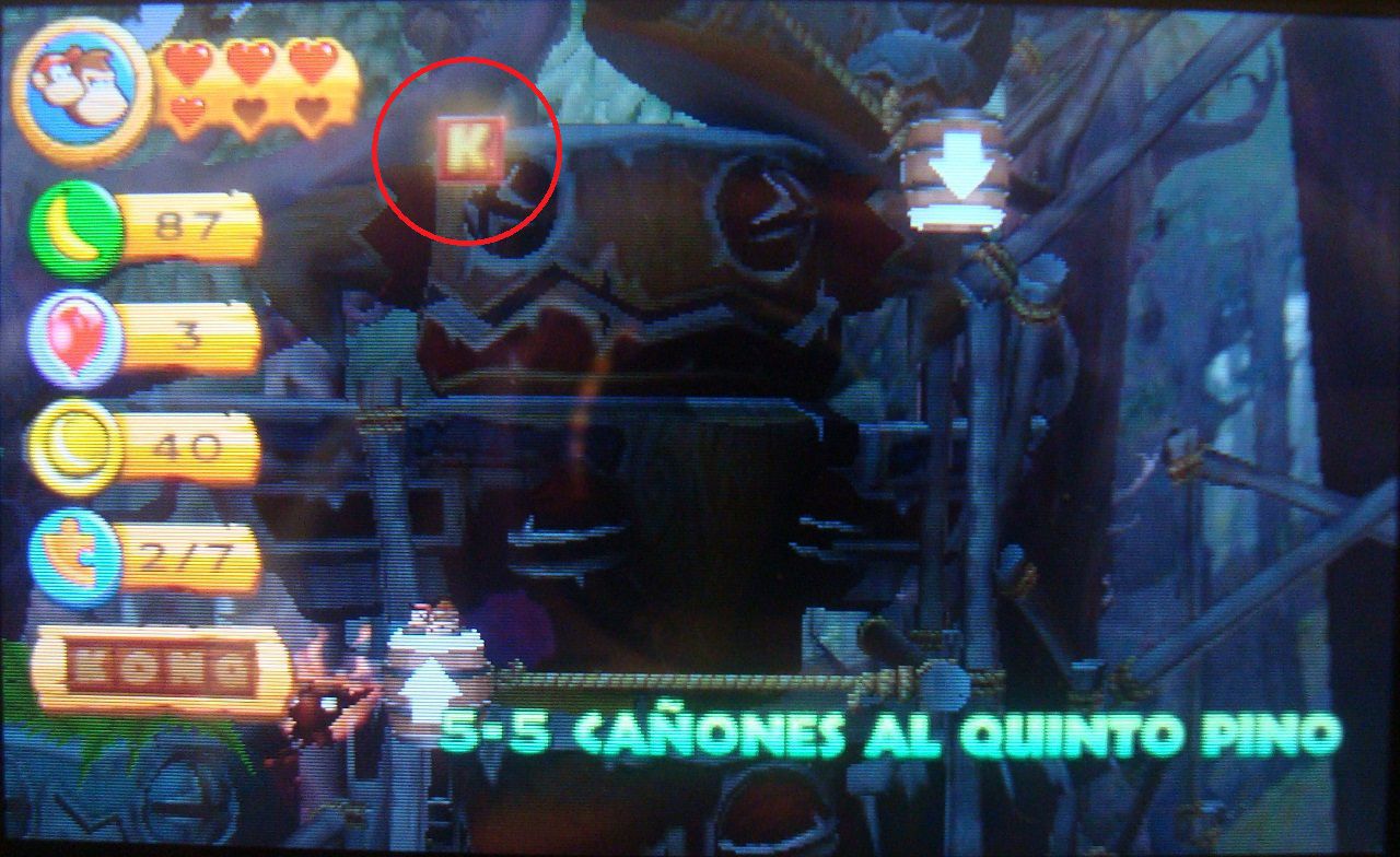 Avanza hasta llegar a una serie de barriles. En uno de ellos verás la letra K. Dispárate hacia ella y luego sigue el camino normal.