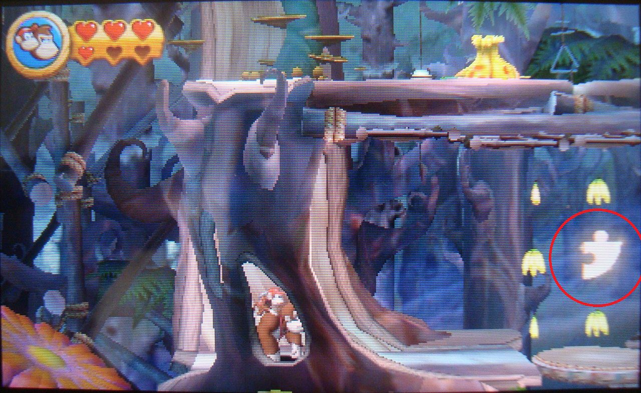 Al inicio de la fase, lánzate por la izquierda en la dirección que hay la moneda. Los barriles te llevarán hasta la primera pieza de puzle.