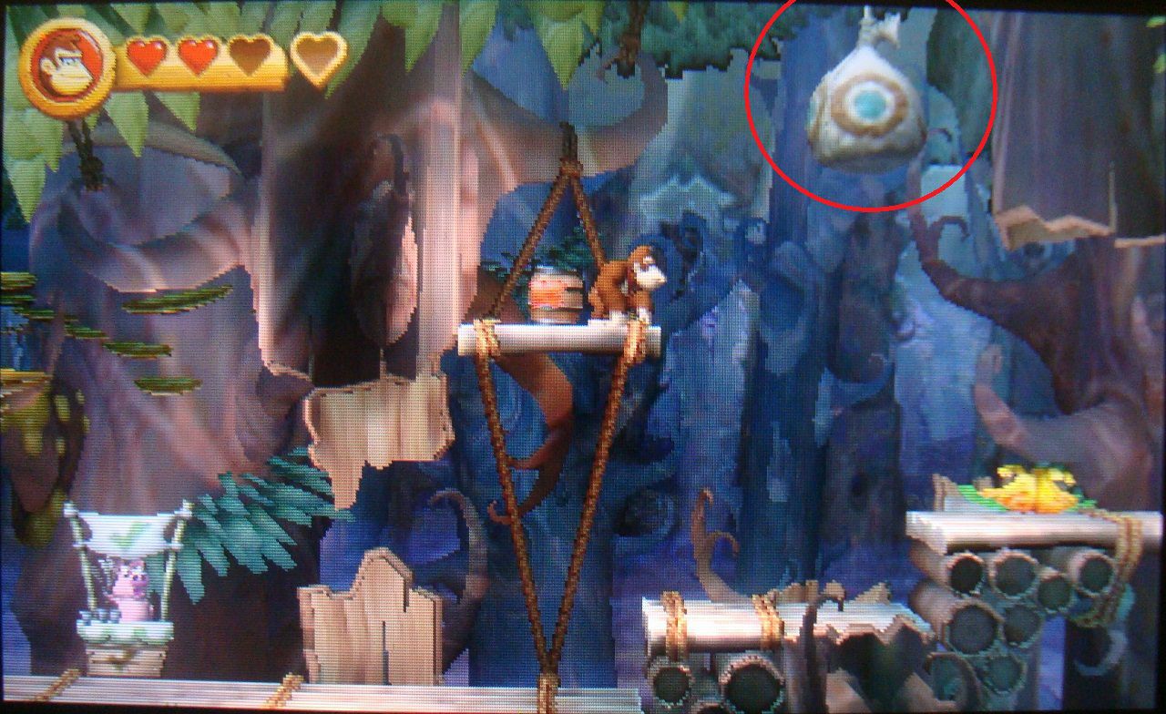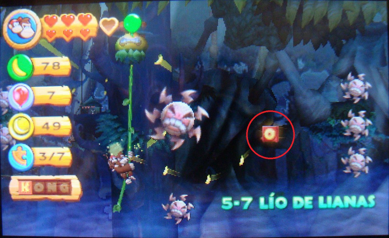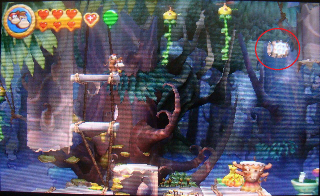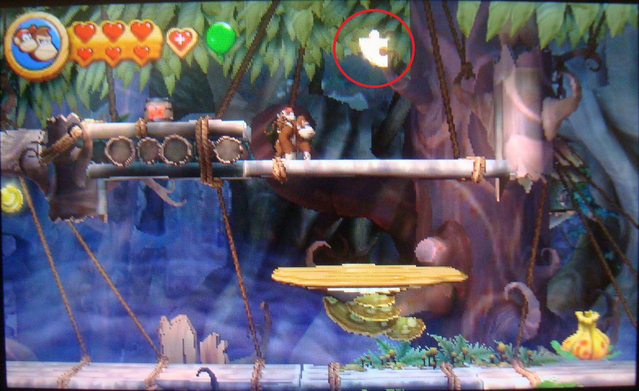 Después de la liana que sujeta un bichito amarillo que va cayendo, sube por la izquierda del enemigo grande. Hay dos plataformas y dos lianas por las cuales se llega a un barril. Esto te permitirá iniciar una fase bonus, con la tercera pieza de puzle como recompensa.