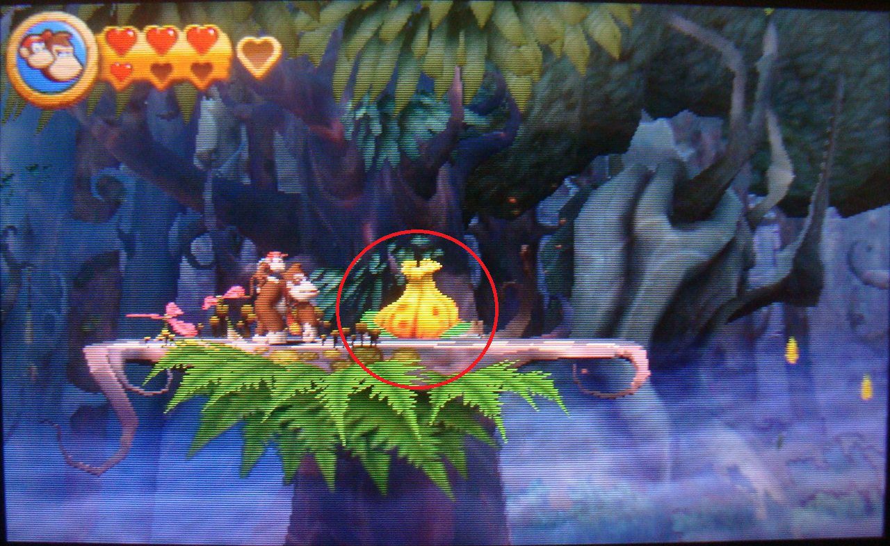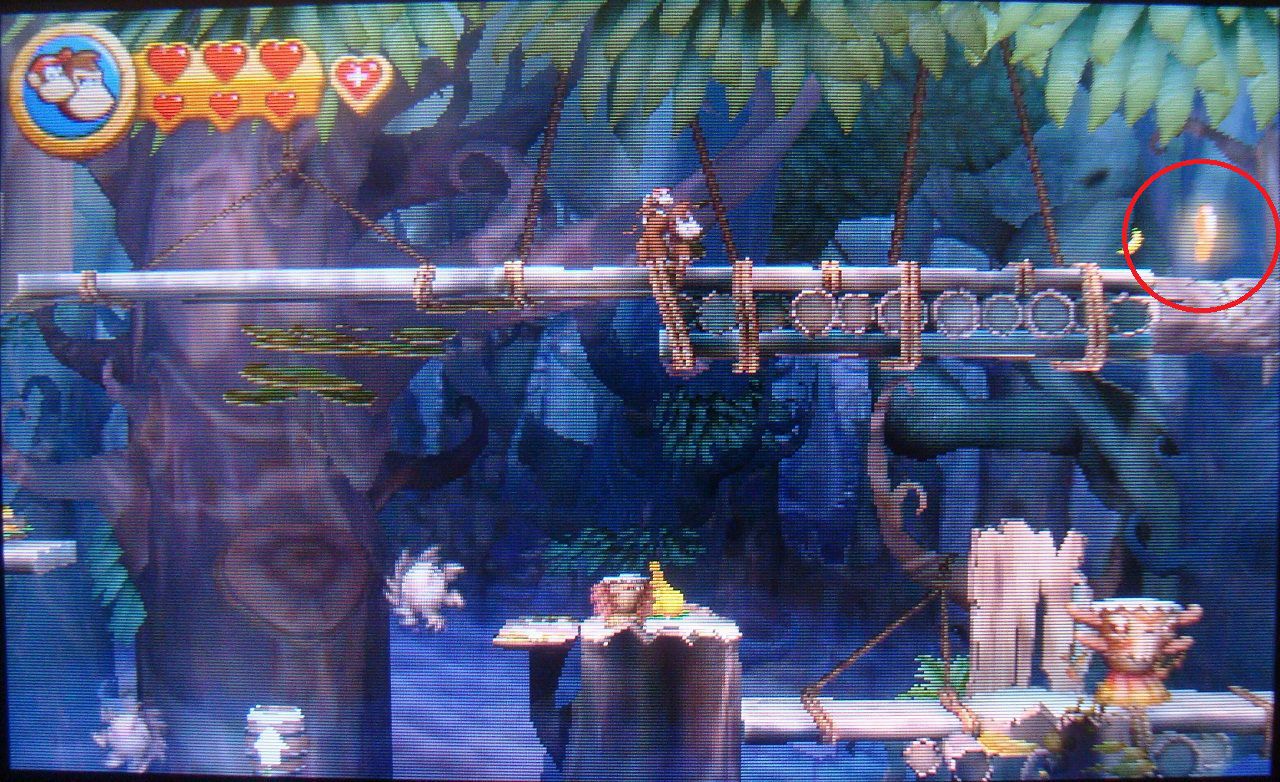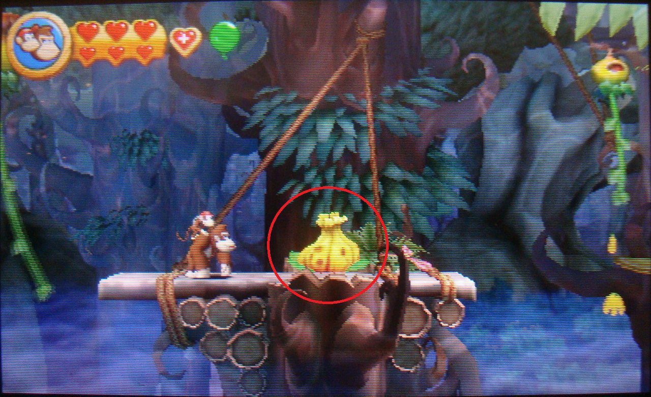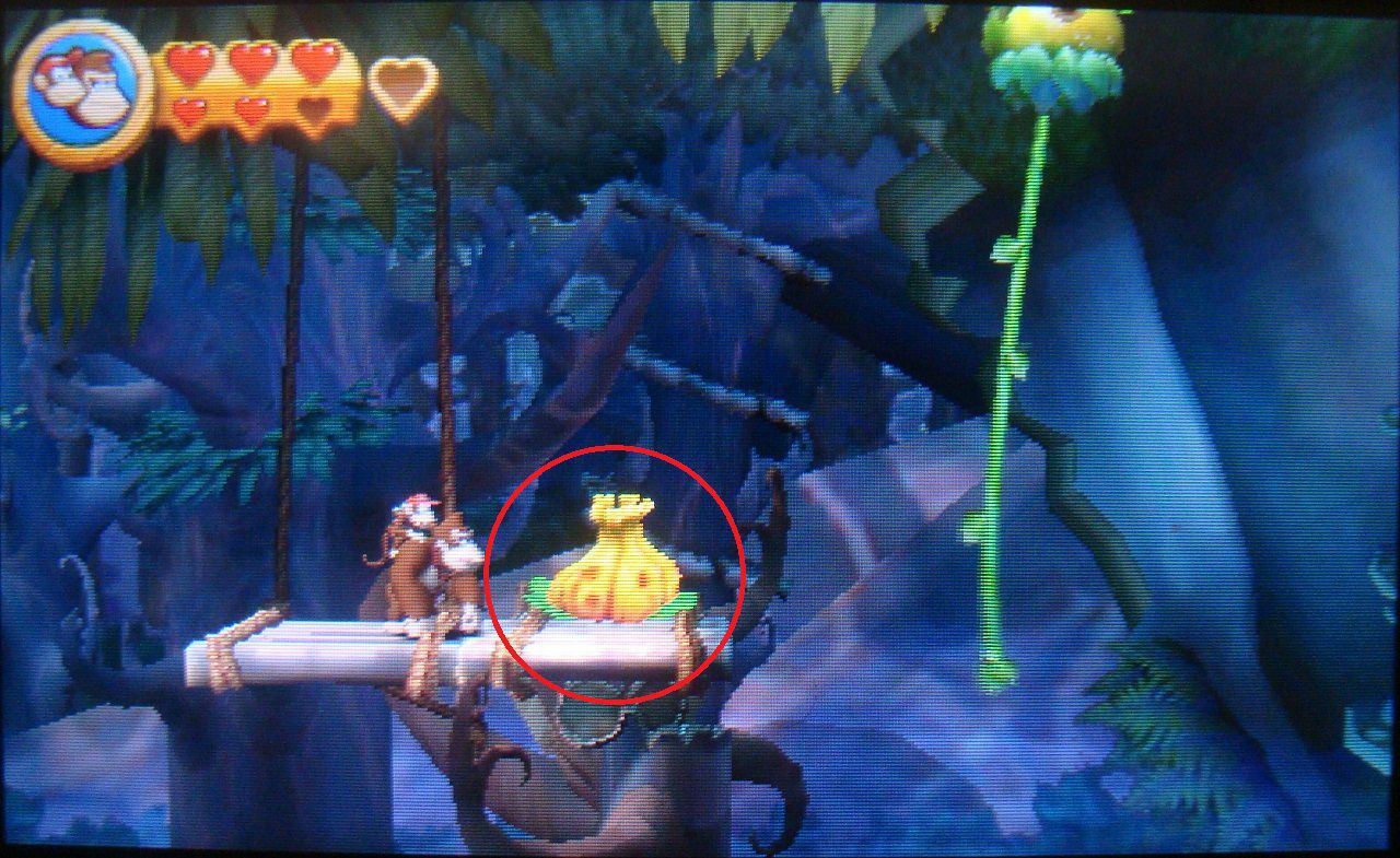 Después de la liana que sujeta un bichito amarillo que va cayendo, sube por la izquierda del enemigo grande. Hay dos plataformas y dos lianas por las cuales se llega a un barril. Esto te permitirá iniciar una fase bonus, con la tercera pieza de puzle como recompensa.