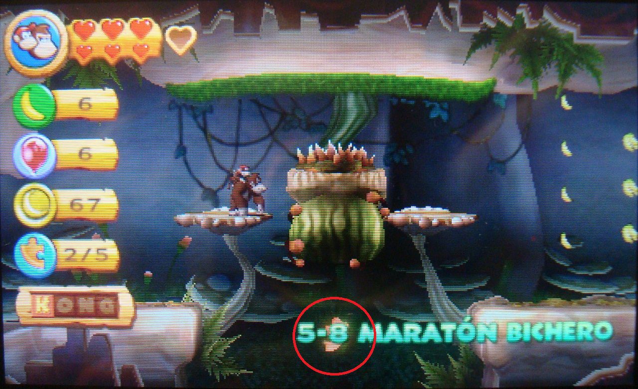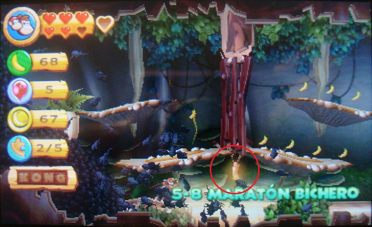 Sigue avanzando y volverás a unos obstáculos similares, que suben y bajan, con ranas entre ellos. Quédate en el hueco del tercero para coger la letra N.