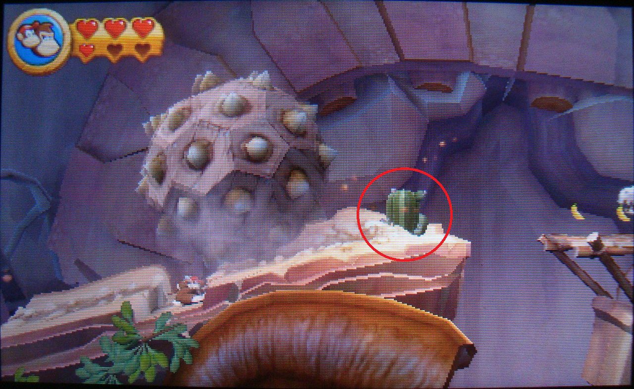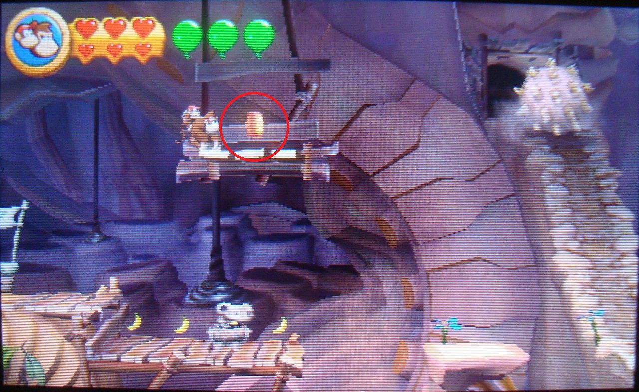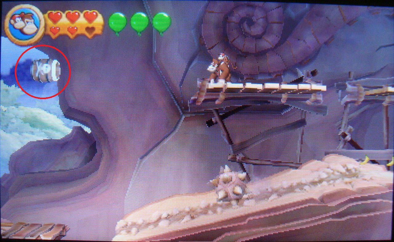Tras la tercera cuesta, métete en el barril y baja rápidamente hasta la zona central, donde hay dos rocas que se pueden romper. Bajo ellas está la séptima pieza de puzle.