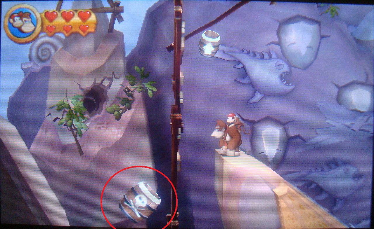Llegarás al primer punto de control. Sigue el recorrido y pronto te meterás en un barril. Cuando te lance hacia el primer plano del escenario, desplázate hacia la izquierda para caer en el barril que hay al lado de la pendiente: te llevará a una fase bonus, donde conseguirás la cuarta pieza de puzle.