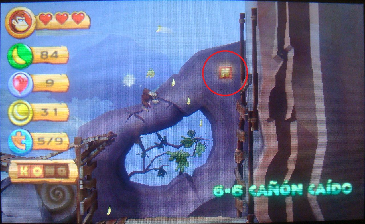 Pasa varias plataformas pequeñitas de las que se derrumban y enseguida verás la letra O.