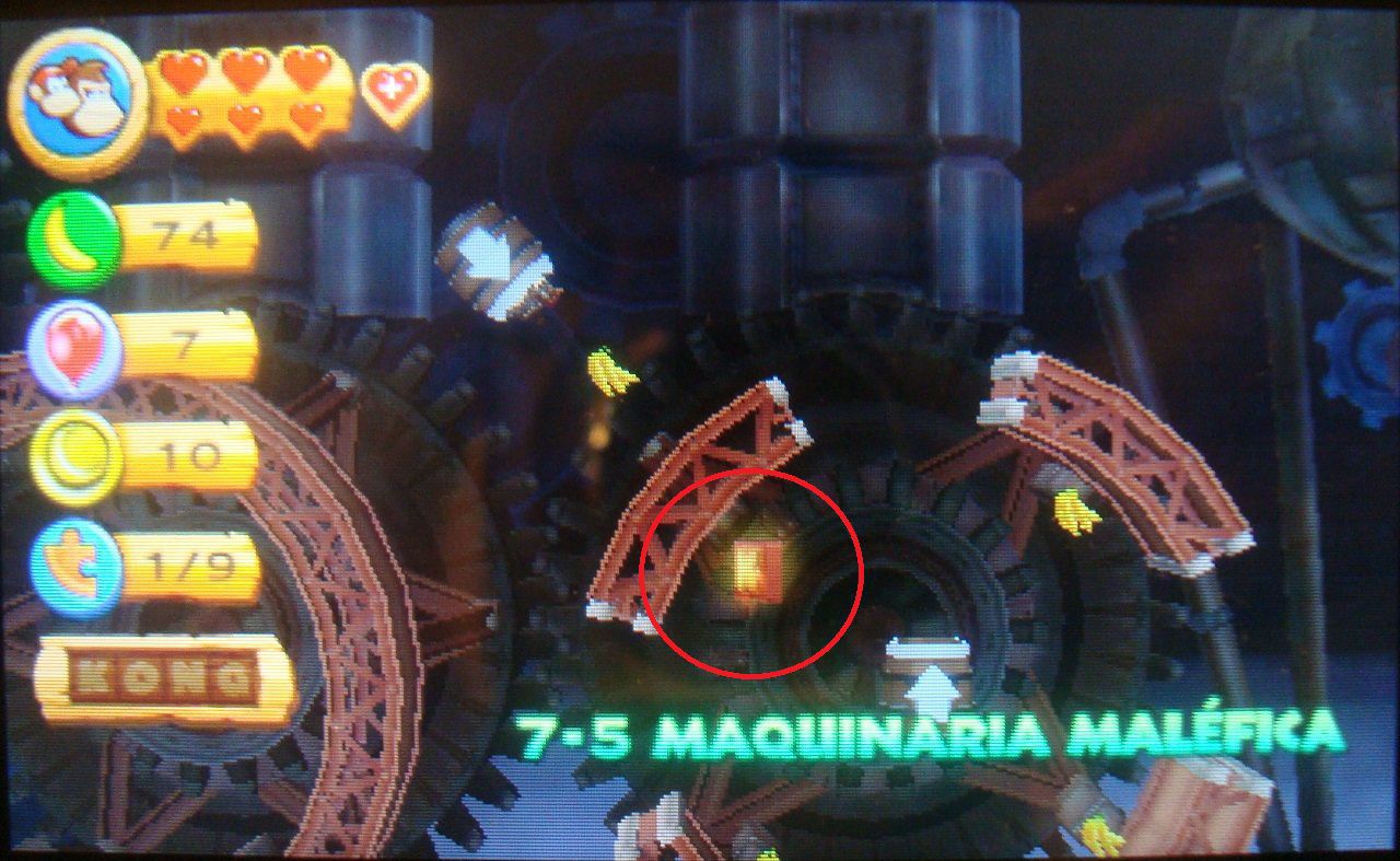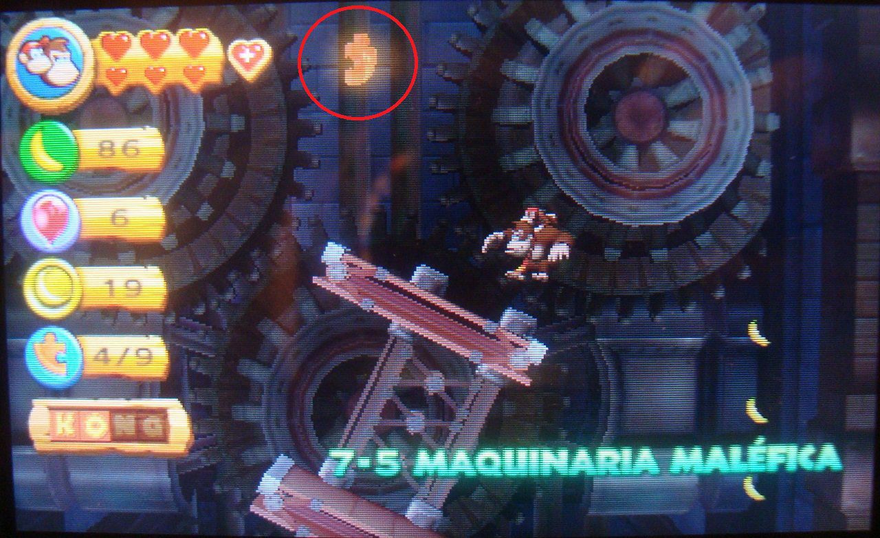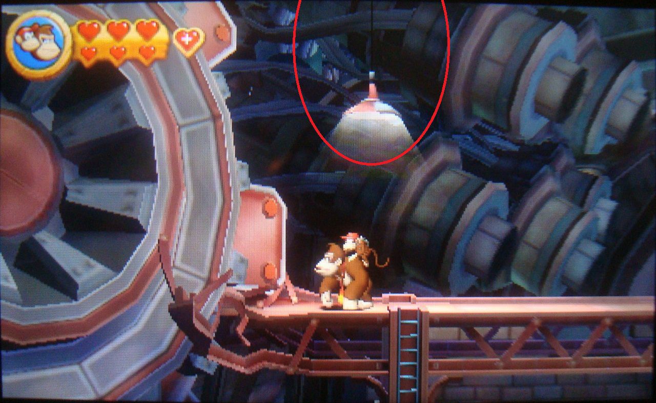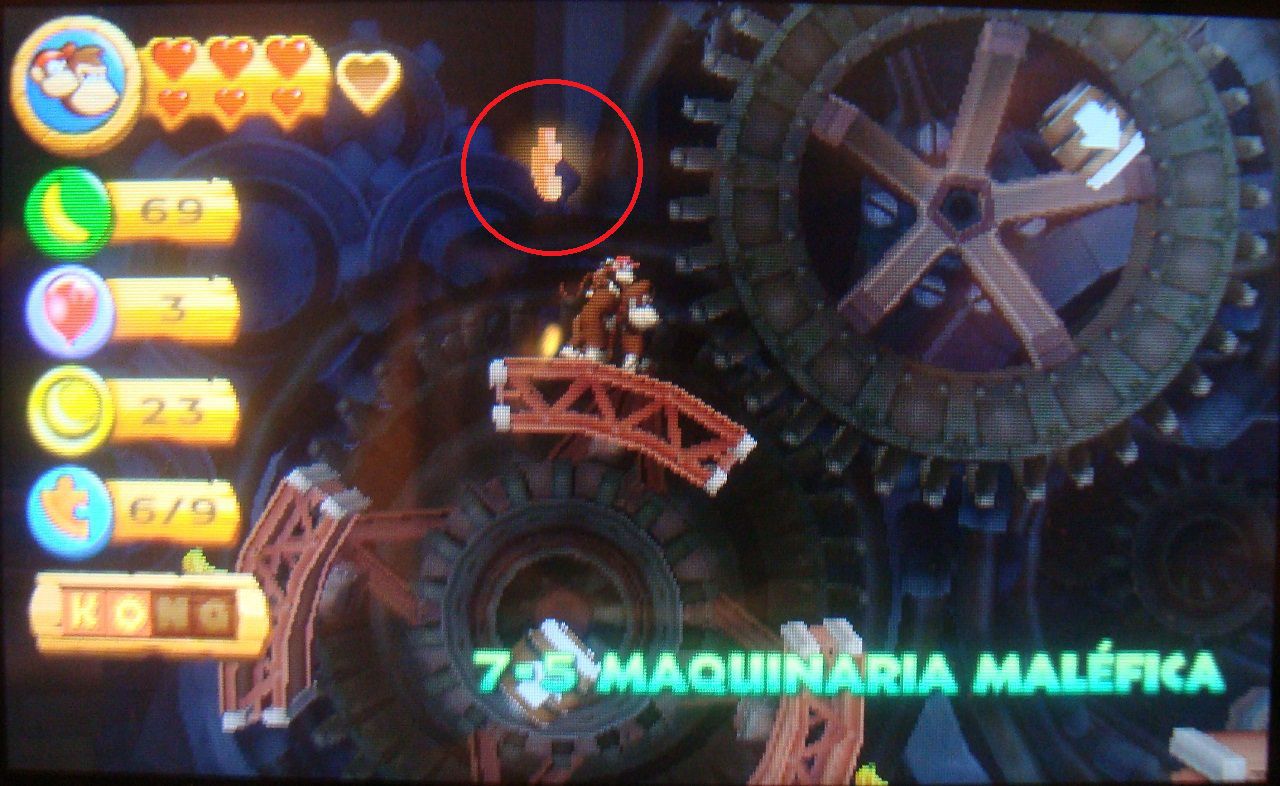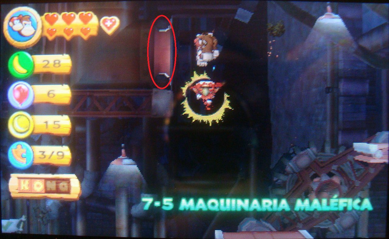 Lo siguiente que verás es una rueda gigante, con una flecha hecha de plátanos encima. Golpea justo en el centro y empezará a girar. Espérate a ver un pasillo vertical y métete por él. Te llevará a una sala donde hay un interruptor rojo que debes activar (te servirá para acceder al jefe del mundo).