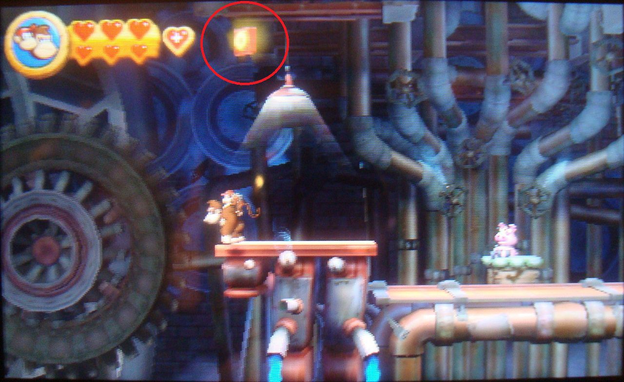 Sigue avanzando hasta que veas la octava pieza de puzle. Para cogerla, lánzate al barril de arriba y luego, desde la plataforma de la derecha, salta de nuevo hacia las vigas que dan vueltas alrededor del barril.
