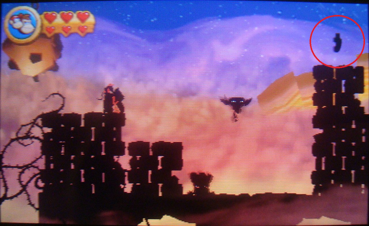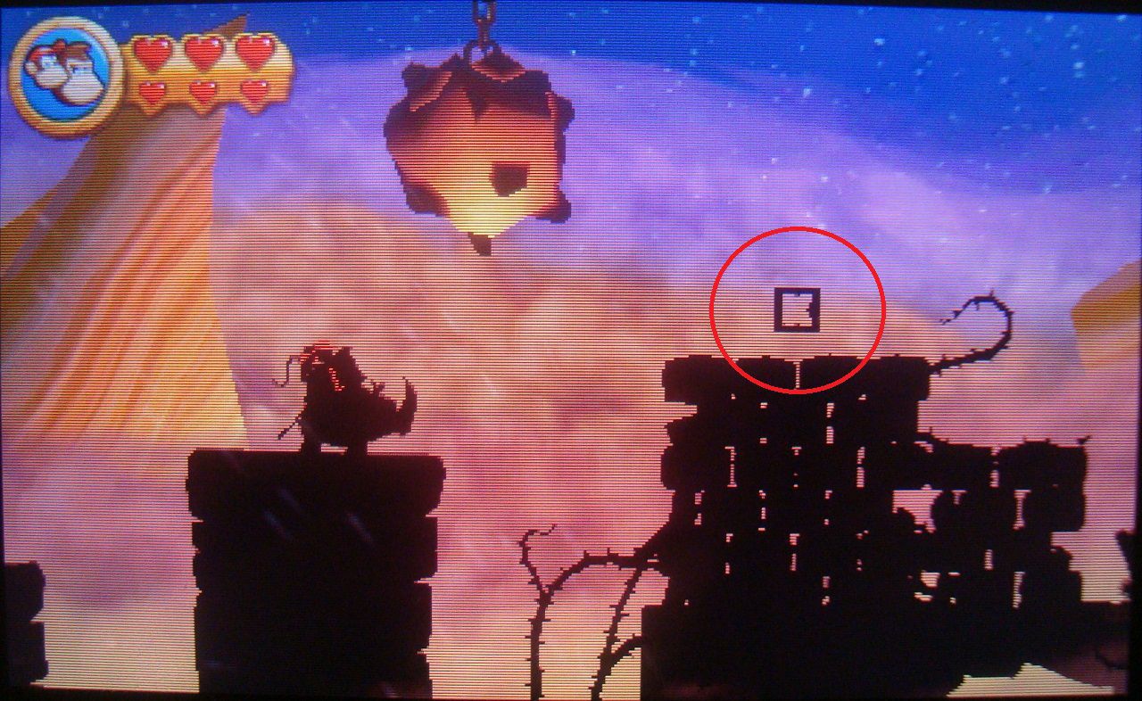 Cuando llegues a la plataforma sobre la que está el barril de meta, corre con Rambi desde la punta derecha y luego salta para alcanzar la plataforma del otro lado, donde está la quinta pieza de puzle.