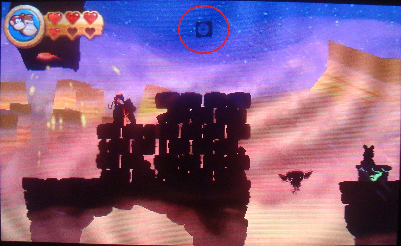 Desde aquí puedes saltar sobre el enemigo volador para llegar a la otra plataforma y recoger la segunda pieza de puzle.