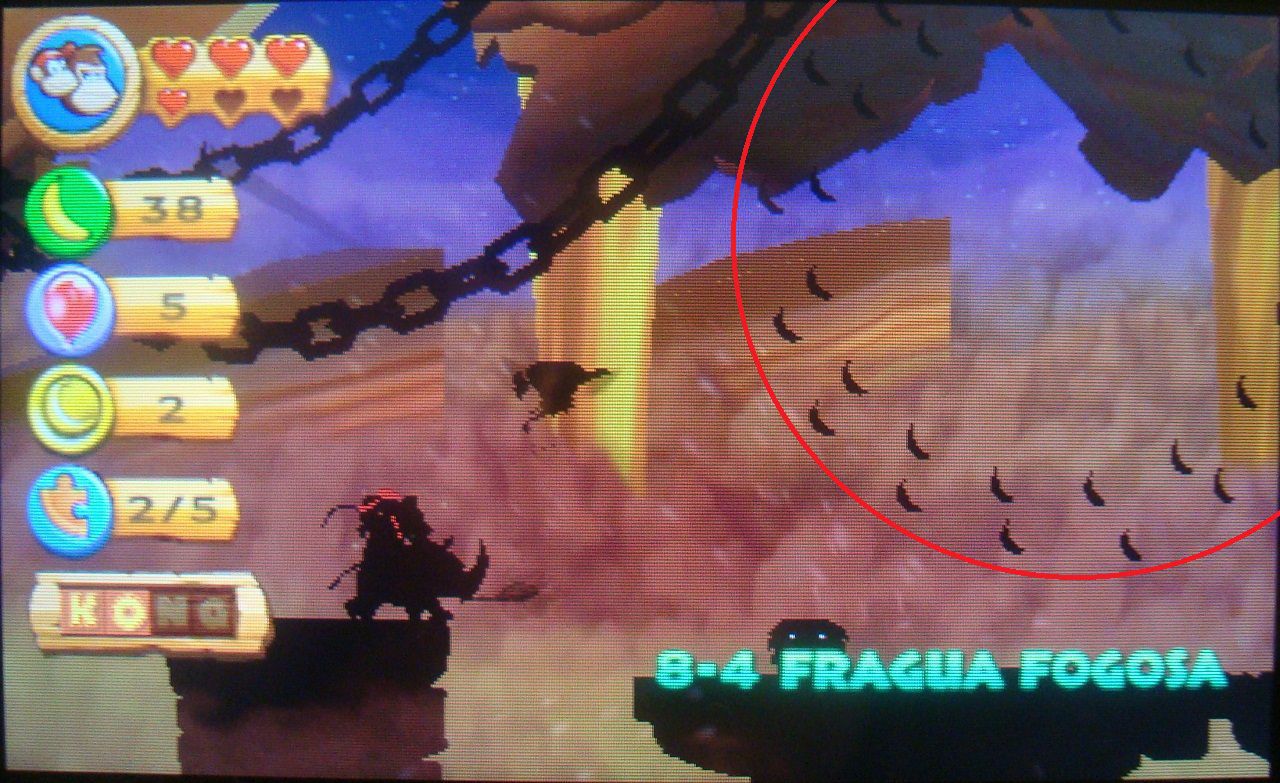 Unos pasos más allá está el primer punto de control y, seguidamente, hay otra caja para recuperar a Rambi (así que no te preocupes si en el anterior movimiento se cayó a la lava). Al poco rato llegarás a una plataforma sobre la cual giran dos círculos de plátanos. Cógelos todos para que aparezca la tercera pieza de puzle.