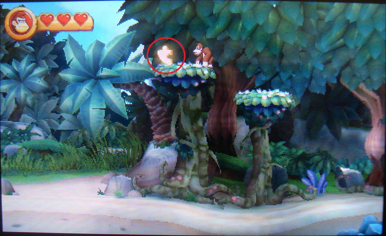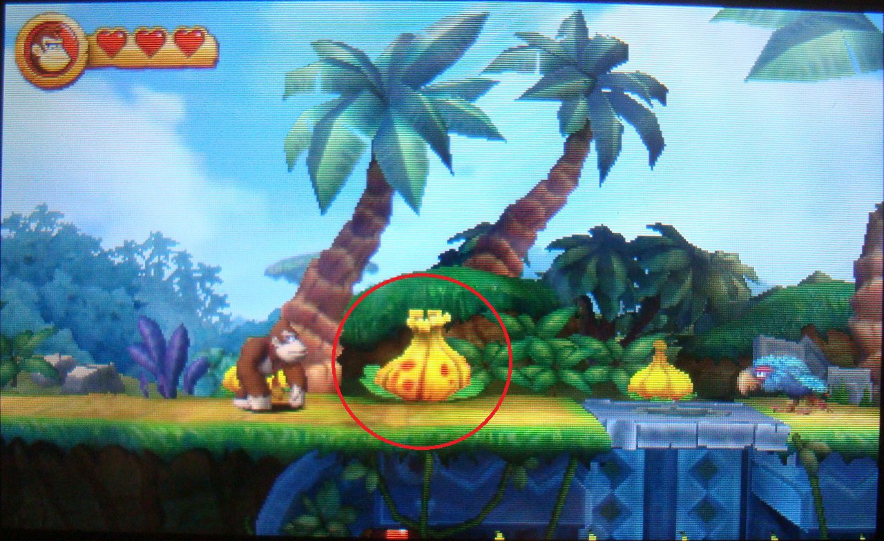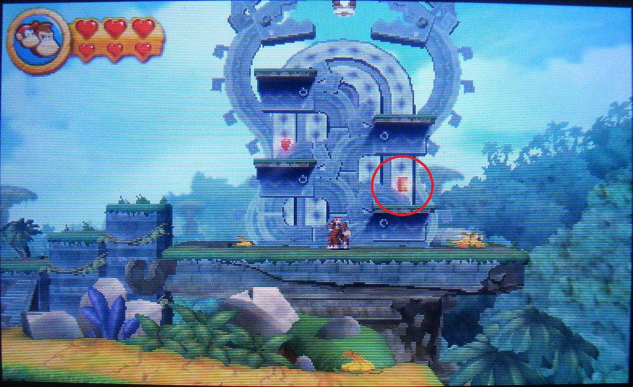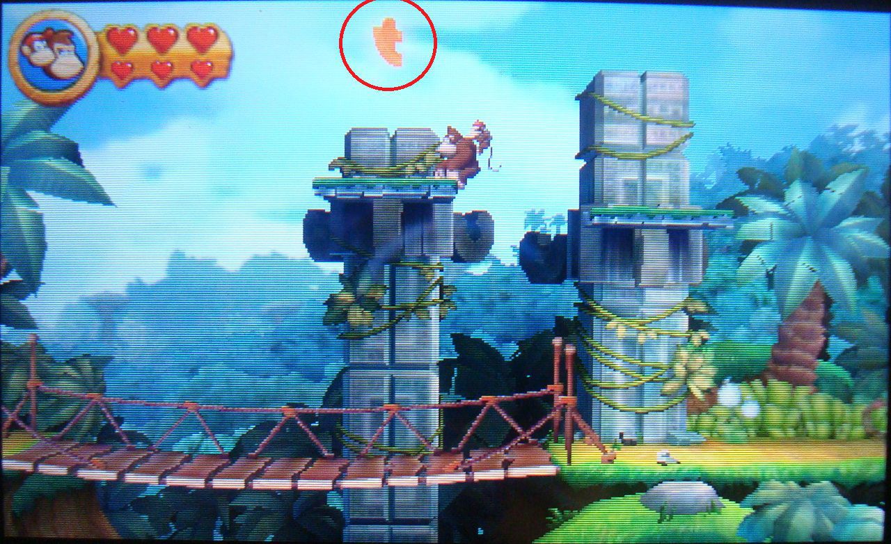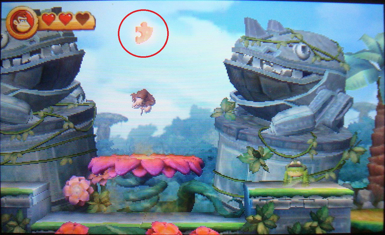 Después de encontrarte con las primeras ranas enemigas, súbete a la flor con muelle y recoge todos los plátanos que van saliendo de las estatuas. Esto te dará la quinta pieza de puzle como premio.