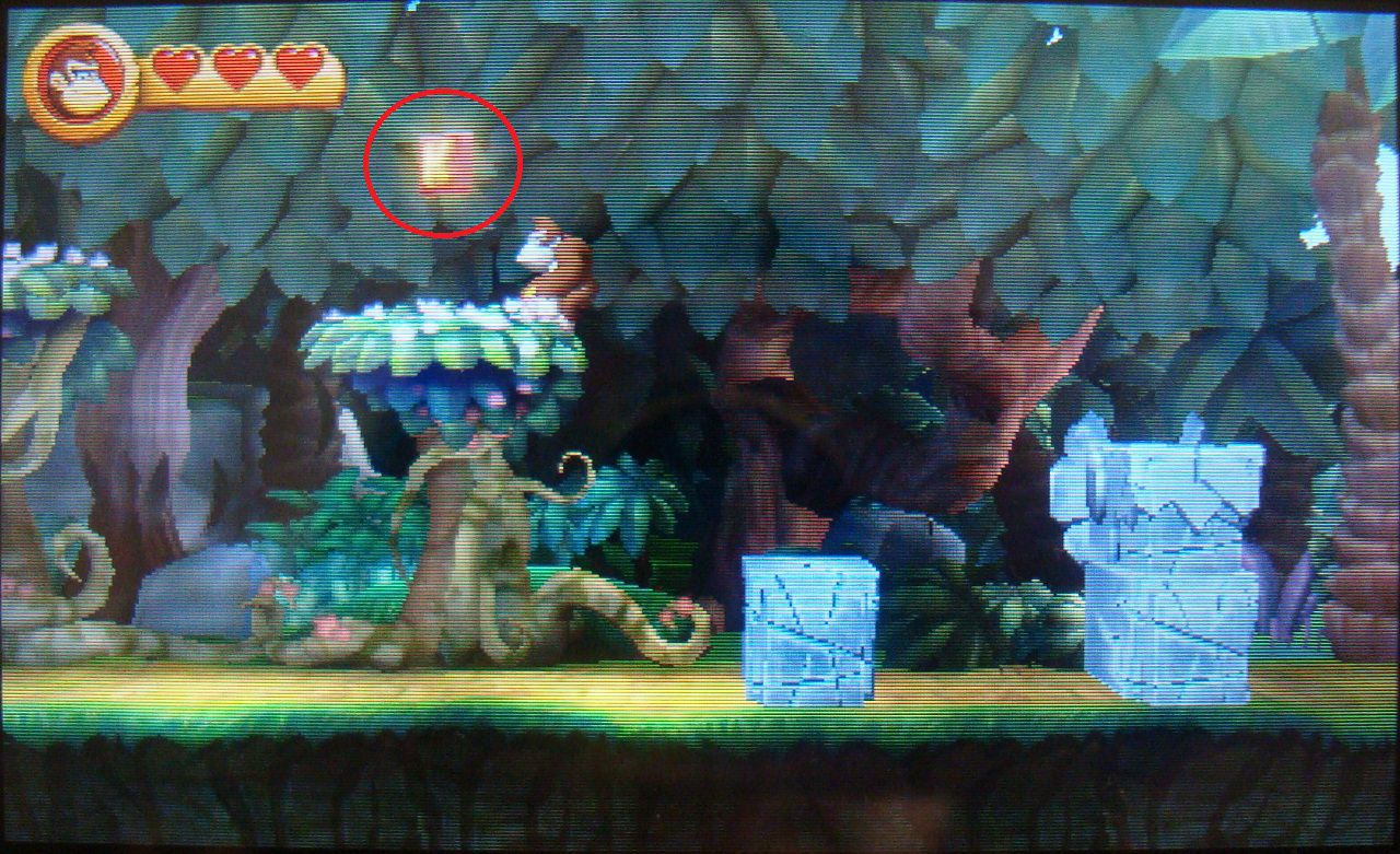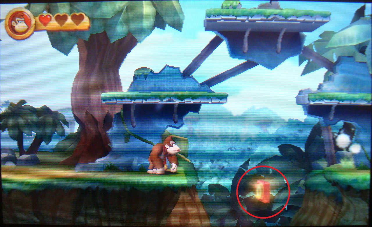 Saltando de plataforma en plataforma llegarás hasta el barril superior. Métete en él y deja que los siguientes te vayan disparando de uno a otro. Regresarás al primer plano de pantalla. Sigue hacia delante hasta llegar a una plataforma de piedra. Golpea el centro y accederás a una pantalla de bonus. Recoge todas las monedas, los plátanos y el globo para ganar la séptima pieza de puzle.