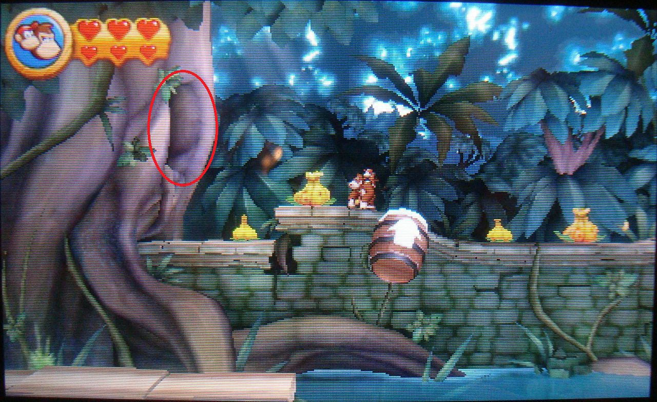 Después de la secuencia de barriles-cañón, saltarás una larga distancia en que tienes que rebotar sobre un enemigo volador para coger el impulso necesario que te hará llegar a la letra N.