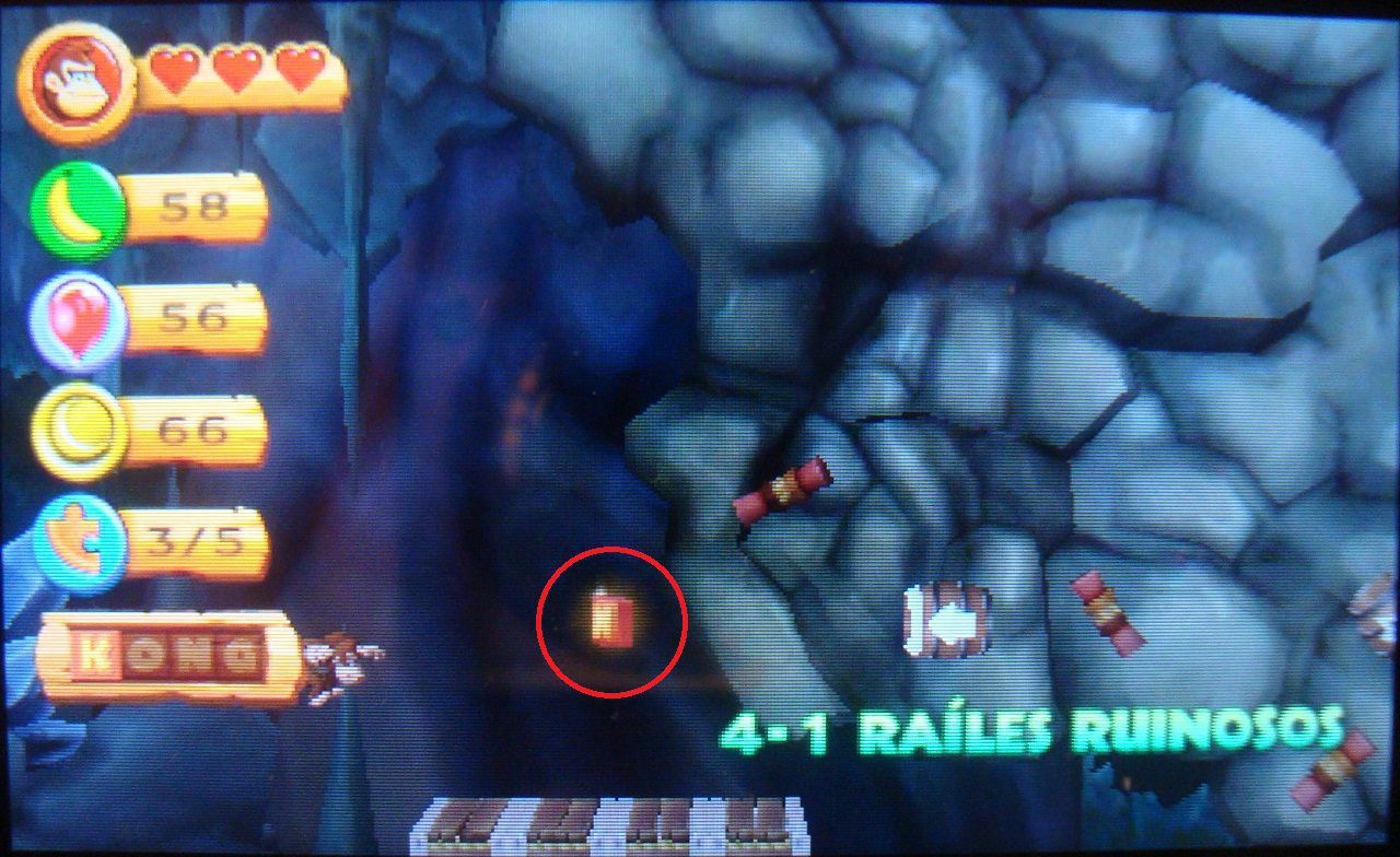 Superada la locura de las vagonetas y barriles, llegarás a suelo firme. A tu izquierda hay un par de plataformas que se caen, bajo las cuales está el acceso a una fase bonus. Complétala y la cuarta pieza de puzle será tuya.