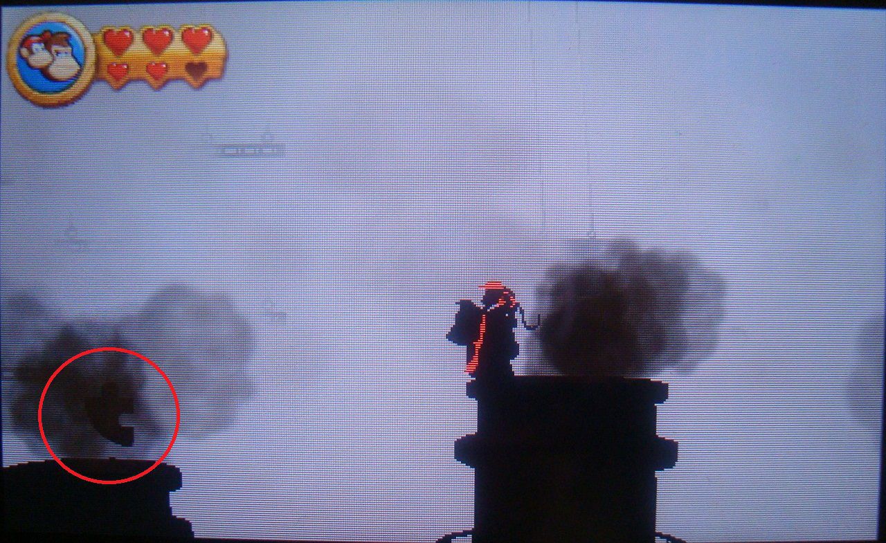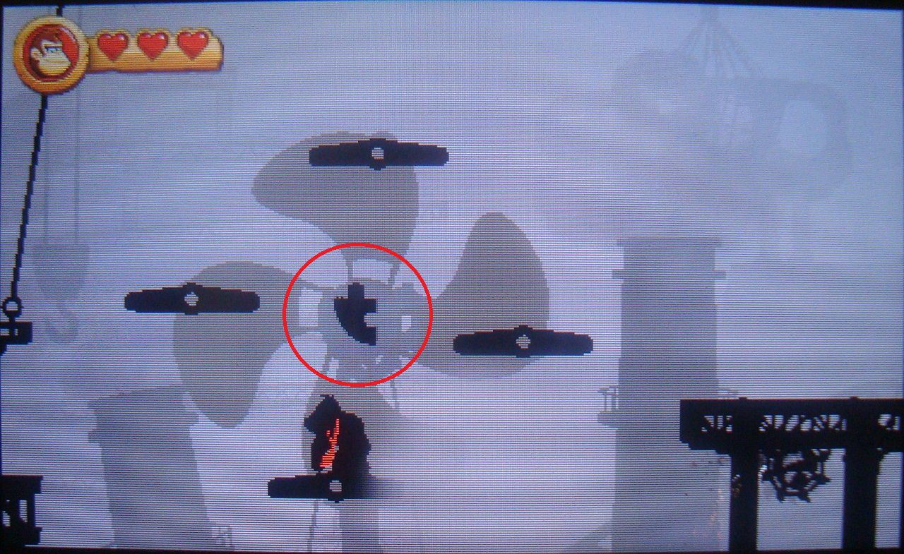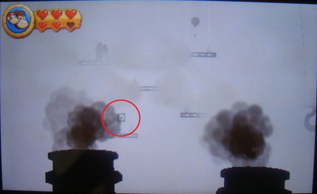 Da media vuelta y sigue el recorrido por la derecha. Sube el pilar haciendo rodar el molino hacia la izquierda y luego salta rápidamente al barril-cañón. Regresarás al fondo del escenario. En el extremo derecho, antes de saltar al barril, sopla hacia la izquierda para revelar la cuarta pieza de puzle.
