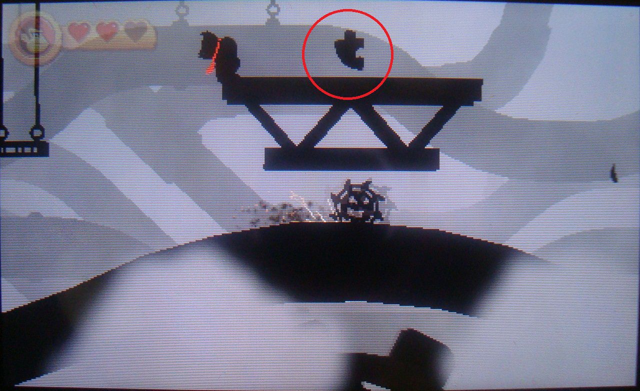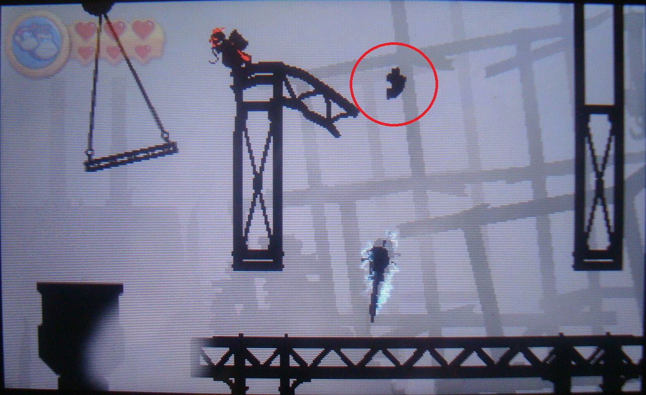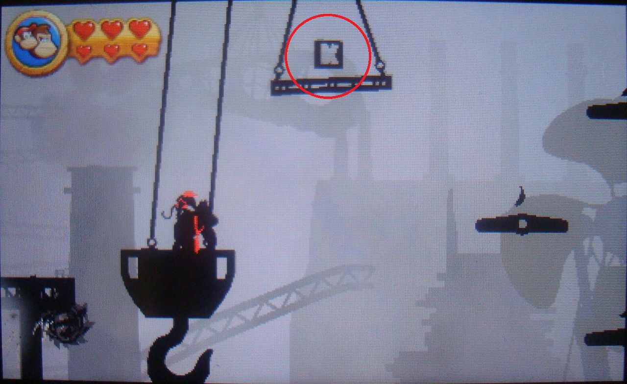 Un poco más adelante está el segundo punto de control. Verás dos pequeñas plataformas colgantes. Desde la segunda, salta hacia la derecha y recoge la quinta pieza de puzle.
