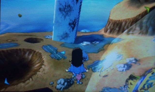 Desplázate a la zona 5, a la Pista del Torneo Espacio Temporal. Desciende el islote de tierra hasta lo más bajo para hallar la Bola Dragón de seis estrellas. Examínala.