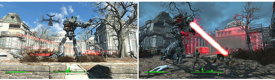 Una vez lleguemos a las ruinas del CIT veremos a mucho mas miembros de la Hermandad, Vertibirds, Caballeros, Ingram e incluso Maxson no ha querido perderse la actuación de la máquina de guerra definitiva. En la explanada contingentes Synths intentarán repeler el ataque, pero ya es demasiado tarde, la Hermandad está arrasando toda resistencia, cuando Liberty Prime fije el blanco, abrirá un boquete en el suelo con su láser óptico a máxima potencia. Es hora de entrar en el Instituto y poner fin a su control.