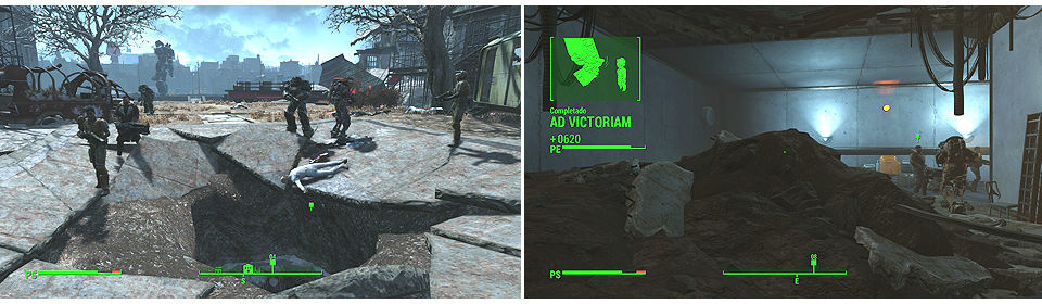 En cuanto se inicie irá directamente al objetivo, tenemos que seguirle hasta las ruinas del CIT. Por el camino hacia el norte de la Comisaría de East Boston nos encontraremos resistencia Synth, pero Libertry Prime dará buena cuenta de ellos con sus bombas Mark 28 y su láser óptico. Podemos ayudarle pero con limitarnos a recoger munición de los enemigos destruidos basta.