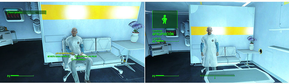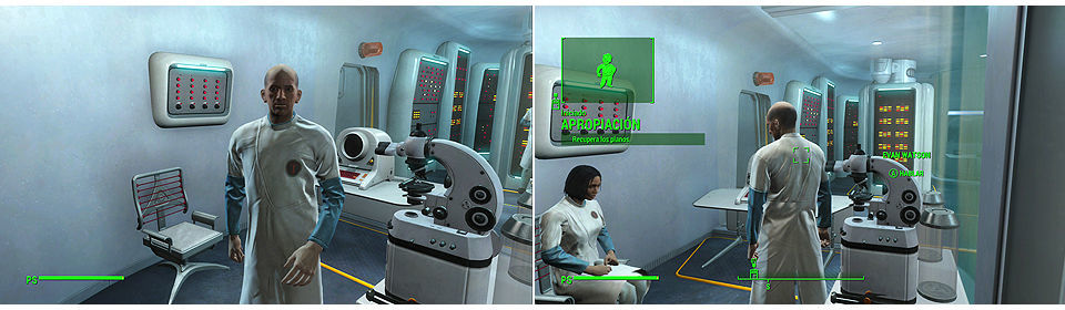 Para iniciar esta misión tenemos que hablar con el doctor Evan Watson en Sistemas Avanzados. Asombrado por la tecnología que ha podido desarrollar la Hermandad del Acero y para conocer más sobre ello nos pide si podemos coger sus planos.