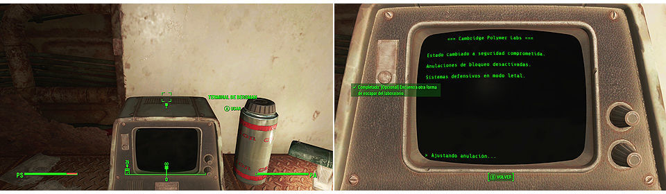 Para entrar en el laboratorio C3 en el piso de arriba podemos usar el terminal [Experto] en la puerta del mismo, o ir al laboratorio C1 y subir por el techo roto hasta llegar a un agujero para entrar en el C3.