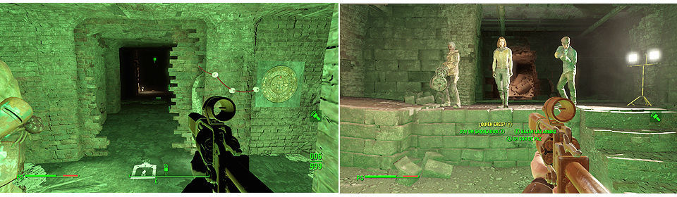 Por la puerta de la derecha al entrar en la sala principal, bajamos hacia los sótanos de la iglesia, aquí encontraremos una placa que se puede girar a derecha e izquierda y mirando al centro pulsar el botón. Hay que escribir la palabra "RAILROAD" como nos indican los marcadores que hemos ido encontrando" en cada letra hay que pulsar el botón, si fallamos empezamos desde el principio. Al hacerlo desbloqueamos la puerta de al lado, nos encontramos con Desdémona y tras hablar con ella nos dan la recompensa y nos pide que hablemos con Deacon para iniciar la siguiente misión del Ferrocarril "Espías como Nosotros".