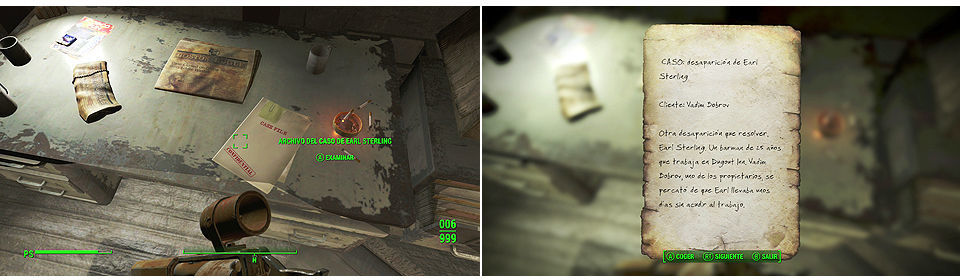 Para iniciar esta misión hay que leer el "Archivo del Caso de Earl Sterling" en la oficina de Detectives de Nick en Diamond City.