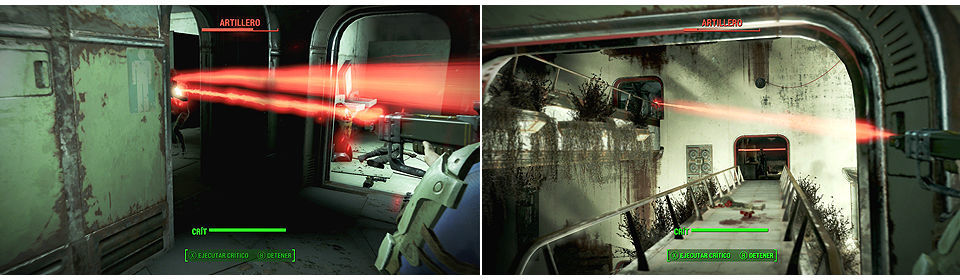 Continuamos subiendo y avanzando por los pasillos, cuidado que nos van a salir bastantes Artilleros al paso. Los eliminamos a todos, no tiene perdida, pero cuidado cuando subamos en un pasillo por un techo derruido y luchemos contra varios Artilleros en un paso elevado con una torreta en el techo. Arriba a la izquierda hay más y uno lleva un lanzamisiles.