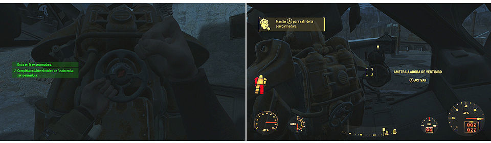 Siguiendo el objetivo encontramos la Servoarmadura, la activamos con el núcleo de fusión y cogemos la ametralladora en el helicóptero, ahora hay que limpiar Concord de enemigos saqueadores, para que la gente de Preston pueda salir del lugar.