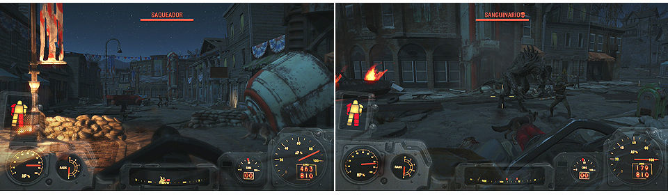 Desde el tejado podemos eliminar al que tenemos justo enfrente, bajamos (saltando con la armadura no nos hacemos daño) y limpiamos la calle de enemigos, los coches explotan si les disparamos continuamente, nos viene bien para matar a varios enemigos, al acercarnos al fondo sale un Sanguinario, mucho cuidado con este enemigo, lo mejor es usar coches e ir disparando mientras retrocedemos, en cuanto nos den el aviso de salud baja rápidamente comemos algo o moriremos, una vez muerto saqueamos todos los cadáveres y volvemos al interior de Museo para informar a Preston.