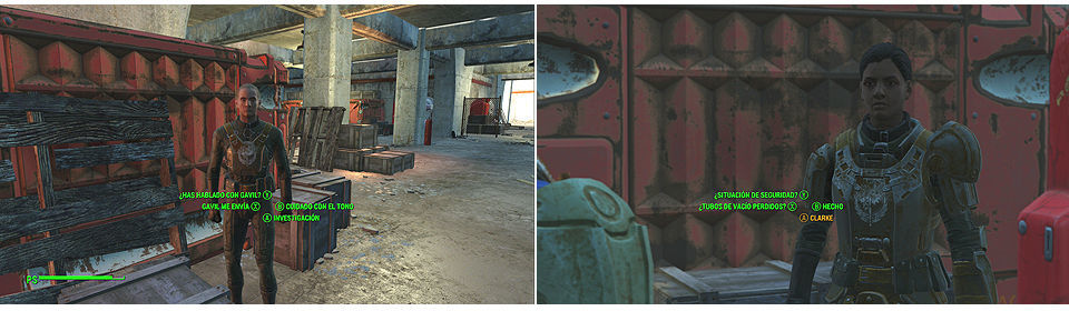 Nos dirigimos hacia la ubicación en el aeropuerto, podemos usar el Vertibird o el viaje rápido para llegar, en el almacén nos encontramos con el Sargento Gavil que pondrá en duda las acusaciones pero nos da una par de nombres para investigar, Lucia y Clarke.