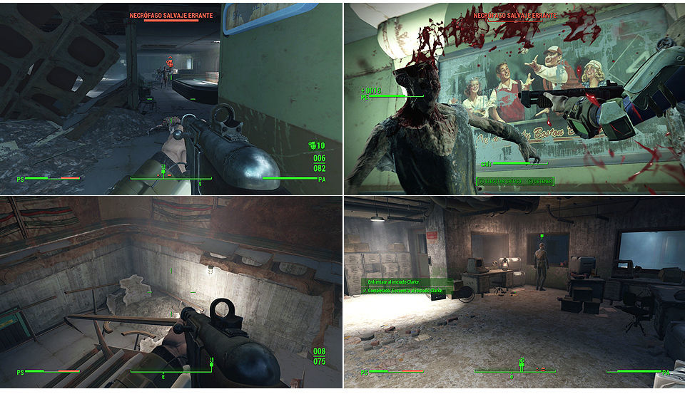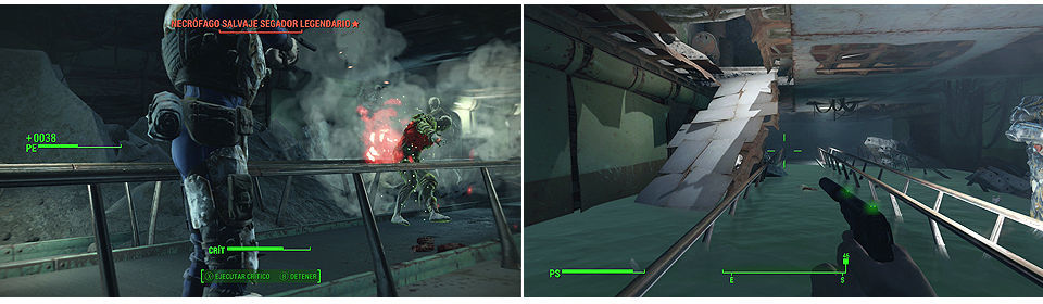 Se inicia el (Objetivo Opcional) Extermina a los Necrófagos, uno es un segador Legendario, avanzamos por el fondo hasta llegar a una zona inundada con más Necrófagos. Los eliminamos a todos y subimos por el techo derruido de la derecha.