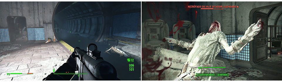 Tras el parking llegamos hasta una estación de metro, también esta llena de Necrófagos, eliminamos a todos hay otro Legendario y registramos las 2 salas que tenemos, cuando tengamos todo avanzamos por el lateral del vagón, llegamos hasta otra zona con Necrófagos los matamos y continuamos por la izquierda.