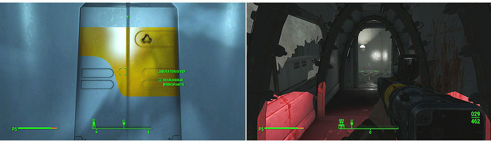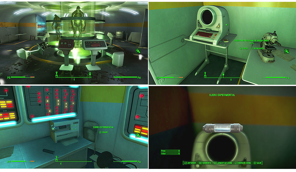 Abrimos la puerta y por fin llegamos a la zona de investigación. Vemos a 2 Supermutantes experimentales metidos en tanques, al fondo a la derecha tenemos un terminal y a su lado una holocinta "Registro personal de Brian Virgil 0176" (la prueba que busca la doctora Li), y al fondo a la izquierda una muestra del Suero Experimental que nos pidió Virgil. Lo cogemos todo y volvemos a hablar con la doctora, por la izquierda tenemos una puerta que nos lleva hasta Biociencias rápidamente.