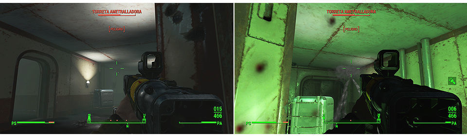 Continuamos por la puerta, cuidado que por esta zona tenemos varias torretas ametralladoras en el techo y son potentes. Llegamos hasta una puerta cerrada que podemos abrir mediante la cerradura [Avanzado] o usando el terminal de la izquierda [Principiante].