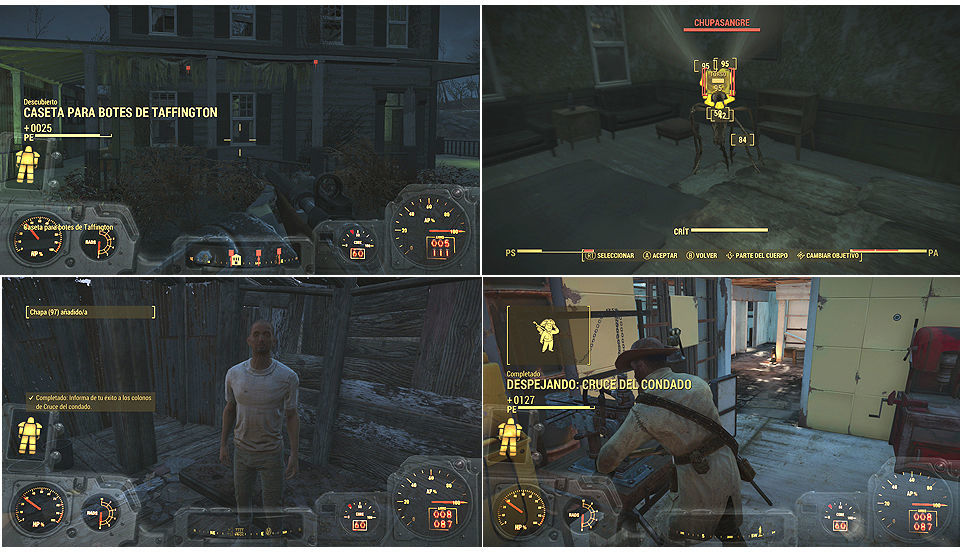 Vamos hasta la zona (en nuestro caso Caseta para botes de Taffington) y eliminamos a todos los enemigos, pueden ser de cualquier tipo: Supermutantes, Necrófagos, Saqueadores... En nuestro caso una plaga de Chupasangres. Puede incluso haber un Sanguinario, cuando acabemos con los enemigos que se nos marcan en rojo, accedemos al taller de la ubicación y volvemos a hablar con los colonos para informarles que el asentamiento ha sido limpiado y recibimos la recompensa. Por último informamos a Preston de que la misión ha sido cumplida.