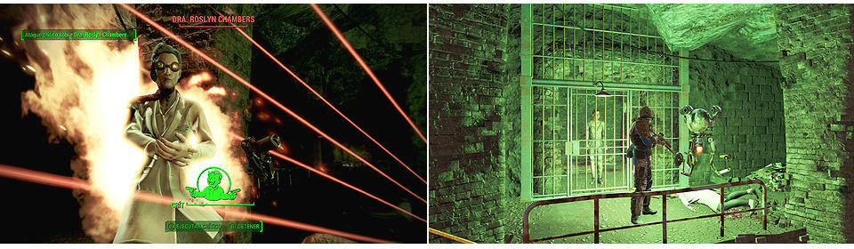 Aquí se inicia un tiroteo contra Manny y la Doctora Chambers, cuidado que la Doctora huye rápidamente. Si queremos eliminarla y no entablar combate con muchos de sus hombres, lo mejor es eliminarla rápidamente, les matamos y rescatamos a Amelia. Podemos forzar la cerradura [Experto] o usar el terminal cerca de donde hablamos con Chambers para desbloquear la celda 1.