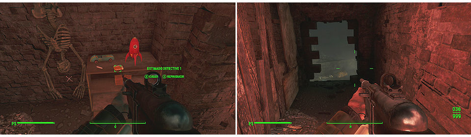 Dentro tendremos que encontrar 4 holocintas llamadas "Querido Detective 1-4", la primera la encontramos según bajamos a la cloaca sobre una mesa con un esqueleto colgado boca bajo al lado.