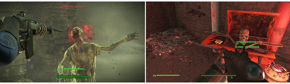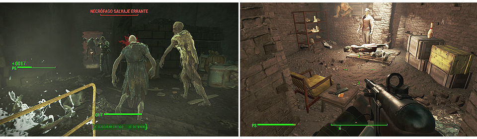 Por último seguimos avanzando pasando por una zona elevada con maquinaria donde tenemos una caja de herramientas y un maletín de herramientas, siguiendo por el pasillo llegamos a otra zona amplia con escaleras, maniquíes y varios Necrófagos (cuidado que al fondo a la derecha hay uno Resplandeciente, pero por donde está, al fondo encontraremos munición y un lanzallamas en una pequeña sala con una camilla).