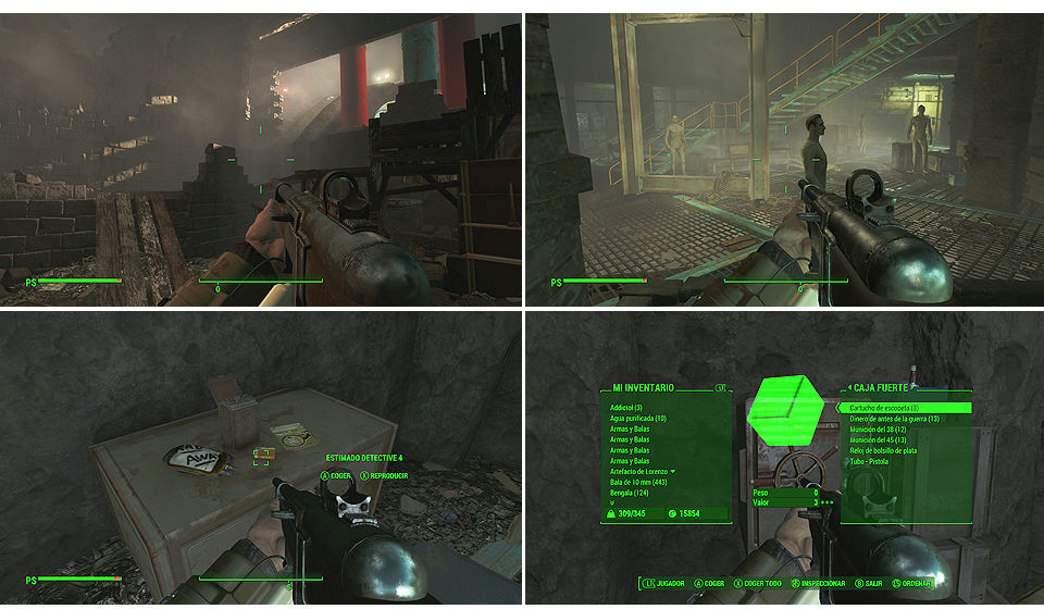 En la sala de la izquierda encontraremos la cuarta holocinta sobre una mesa, una revista de "Todo Sobre Cerraduras" y una caja fuerte [Experto] la derecha , lo cogemos todo y salimos de la cloaca continuando subiendo por las escaleras hasta llegar a una pared derruida para poder tirarnos y volver a la zona del principio.
